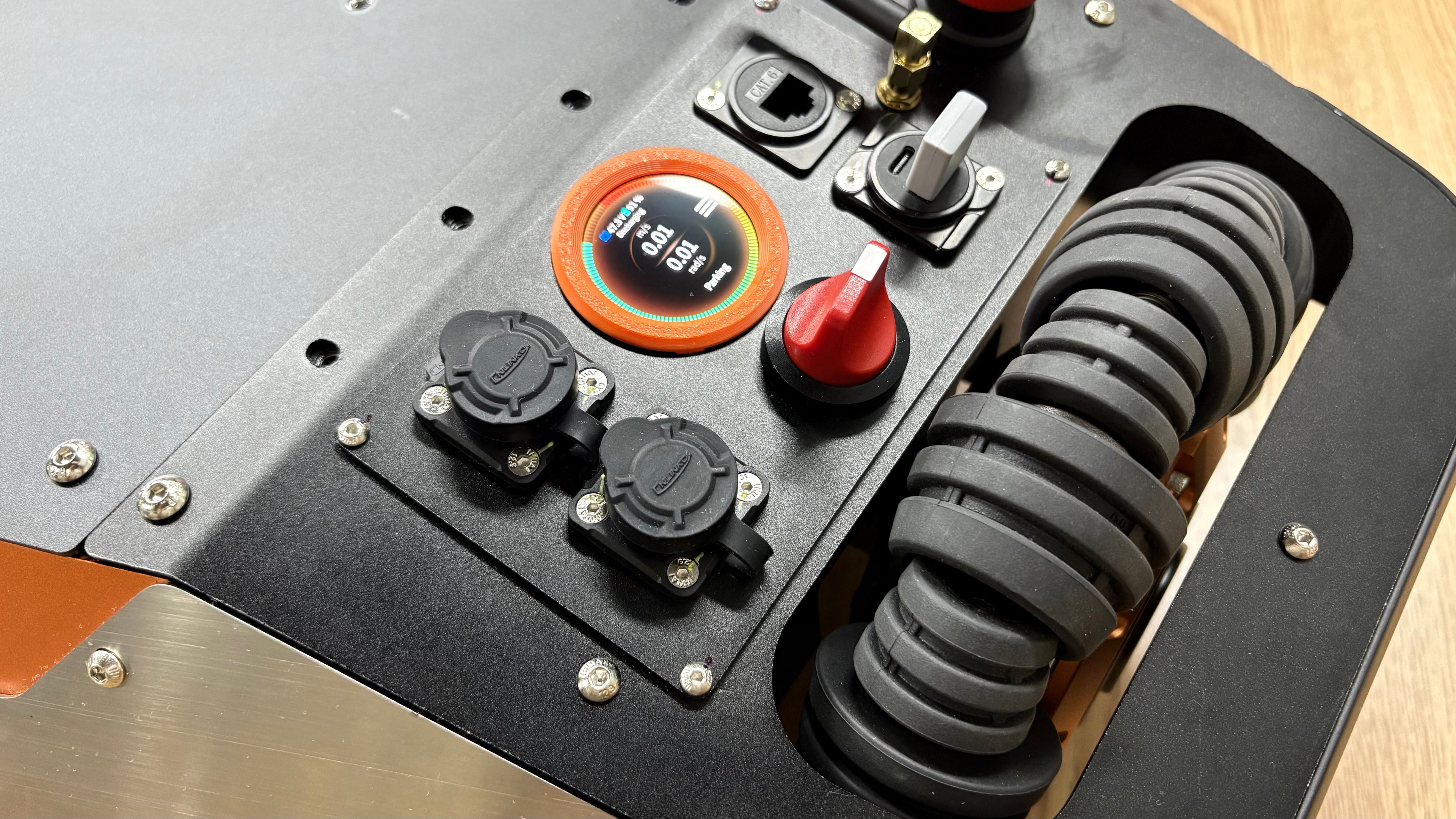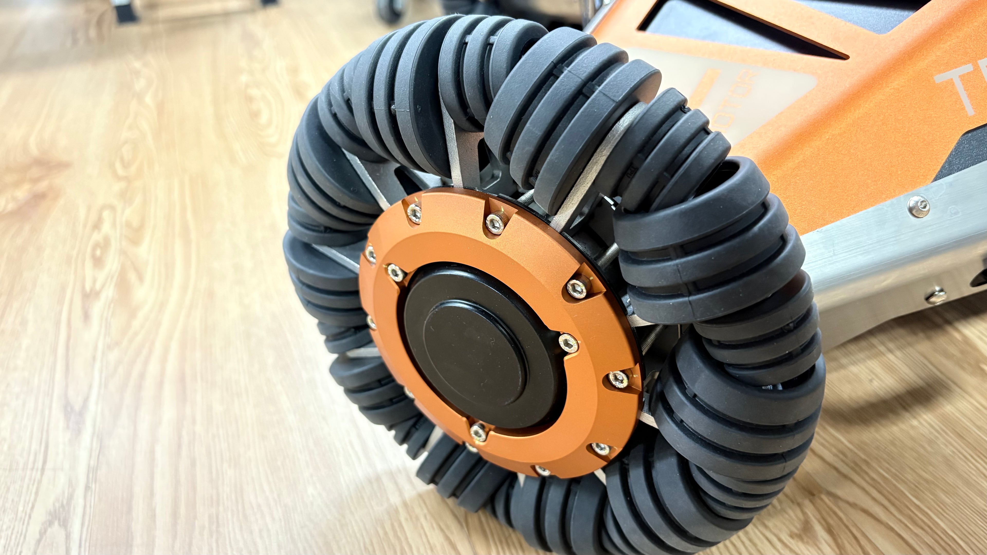 TRIGGER-A3 is an indoor-outdoor universal chassis adopting a three-orthogonal-wheel configuration. Its triangular structure enables simultaneous omnidirectional mobility and minimal turning radius; enlarged orthogonal wheels facilitate non-off-road outdoor scene mobility; non-sunken suspension supports upper structures with high centers of gravity, balancing compactness and stability.